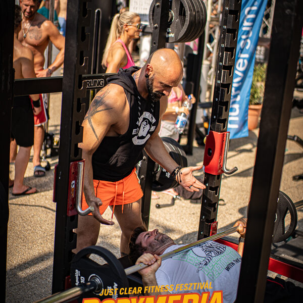 A hasonlóan komoly tömeggel rendelkező Kiss Máténak bérelt helye volt a meghívottak között. Ő a 2021-es Megateszten sokkolt először hatalmas tömegével és ritka izomtapadásaival és az eltelt időben megvívta magában a naturál-nem naturál kérdést oly módon, hogy következetesen maradt a doppingmentes vonalon. Emellett edzőként nemhogy aktív, de kifejezetten beleásta magát a szakmába, úgyhogy a legjobbak közé tartozik. (Csak úgy, mint az elején említett Simon Roland, de eleve nem nagyon voltak köztünk nem szakemberek.)